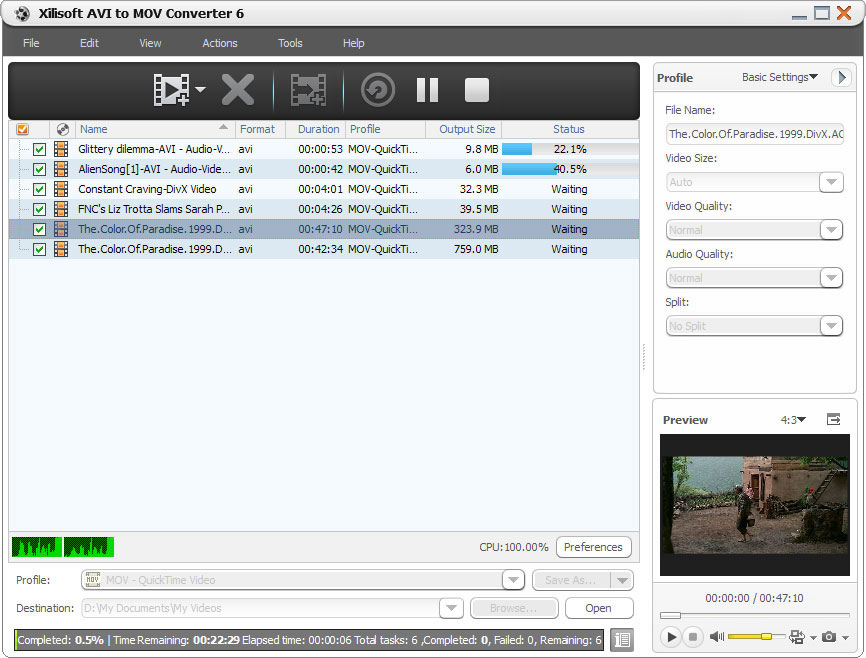 AVI to MOV Converter to convert AVI to QuickTime MOV video file.