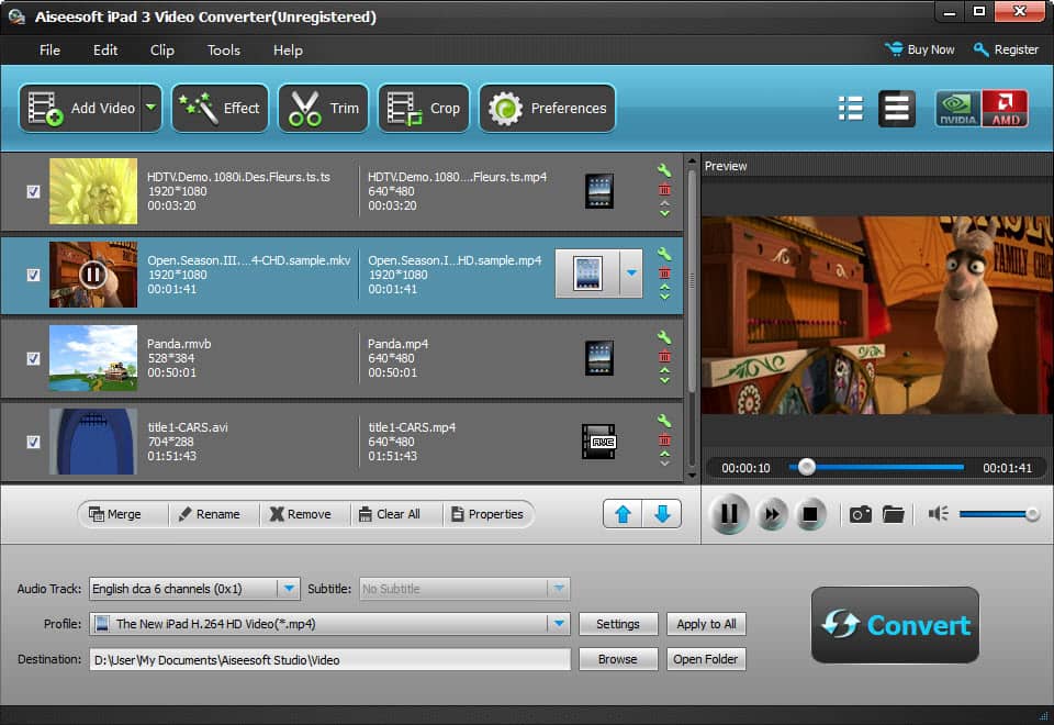 Aiseesoft iPad 3 Video Converter convert all popular video and audio files to ipad 3 compatible formats.